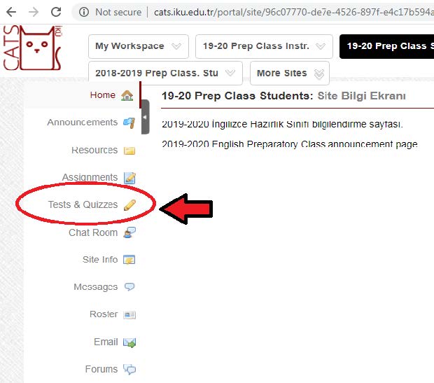 3. Go to “Tests&Quizzes” click on the exam you are supposed to take.